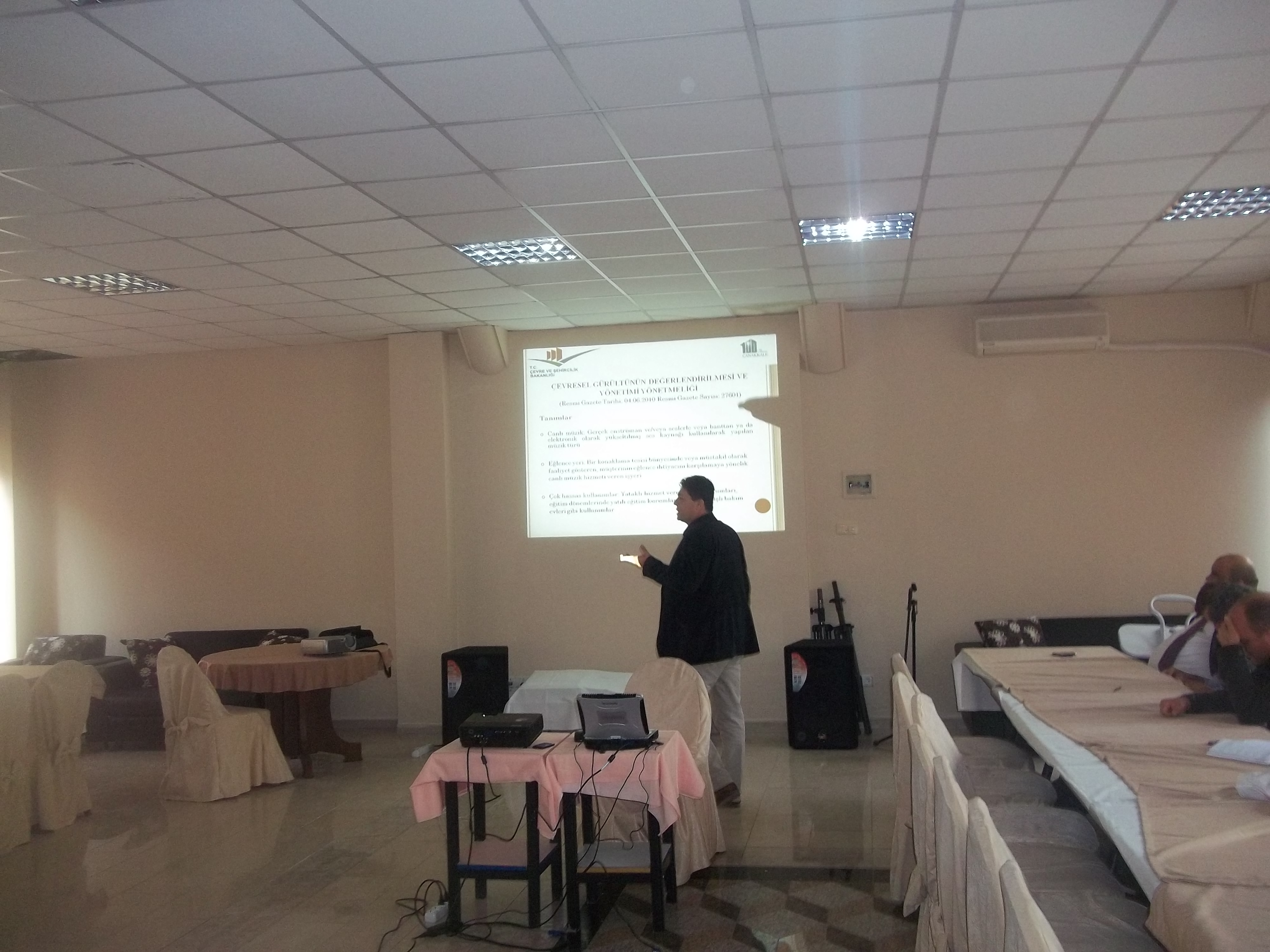 07.10.2015 tarihinde Şube Müdürü Abdurrahman EREN tarafından gürültü kirliliği ile ilgili Müdürlüğümüz personeline yönelik olarak toplantı salonunda eğitim verilmiştir.