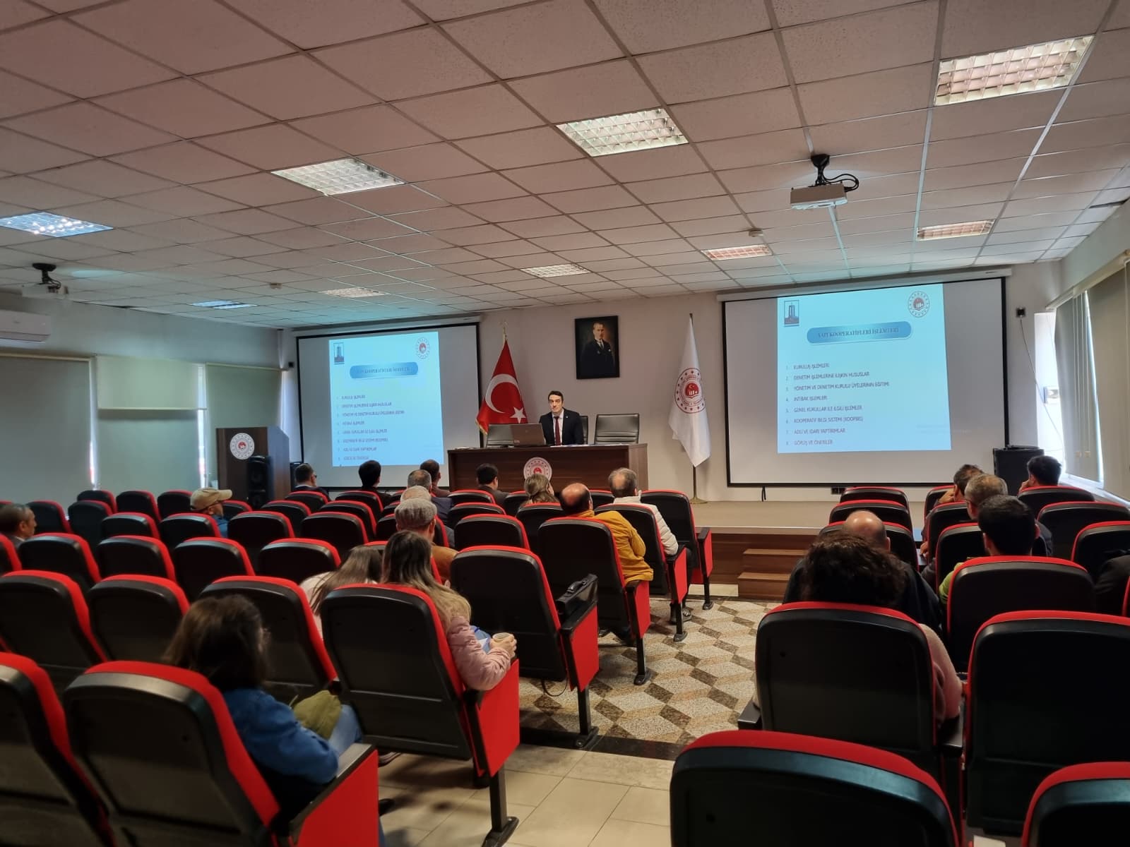 İl Müdürlüğümüz 15 Temmuz Konferans Salonu'nda Kooperatifler Kanunu ve ilgili mevzuatın öngördüğü yükümlülükler, kuruluş ve denetim işlemleri, yönetim ve denetim kurulu üyelerinin eğitimi, genel kurullar, intibak süreci, KOOPBİS veri girişleri ile adli ve idari yaptırımlar hakkında detaylı bilgilendirme ve değerlendirme toplantısı yapılmıştır.